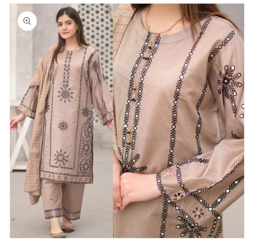 3. Dupatta: The set is completed with an exquisite wool shawl, ideal for colder seasons. The soft and warm shawl adds an extra layer of luxury, while its fine texture enhances the overall ensemble.