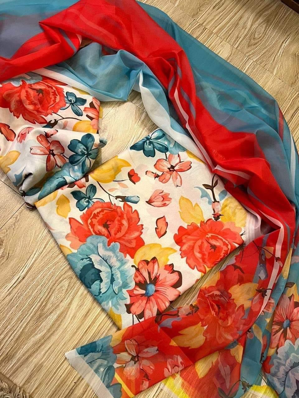 Dupatta (Chiffon Fabric): Adding a touch of grace and sophistication, the chiffon dupatta drapes beautifully and flows effortlessly. Its airy texture balances the structured lawn fabric, creating a look that’s both stylish and comfortable.